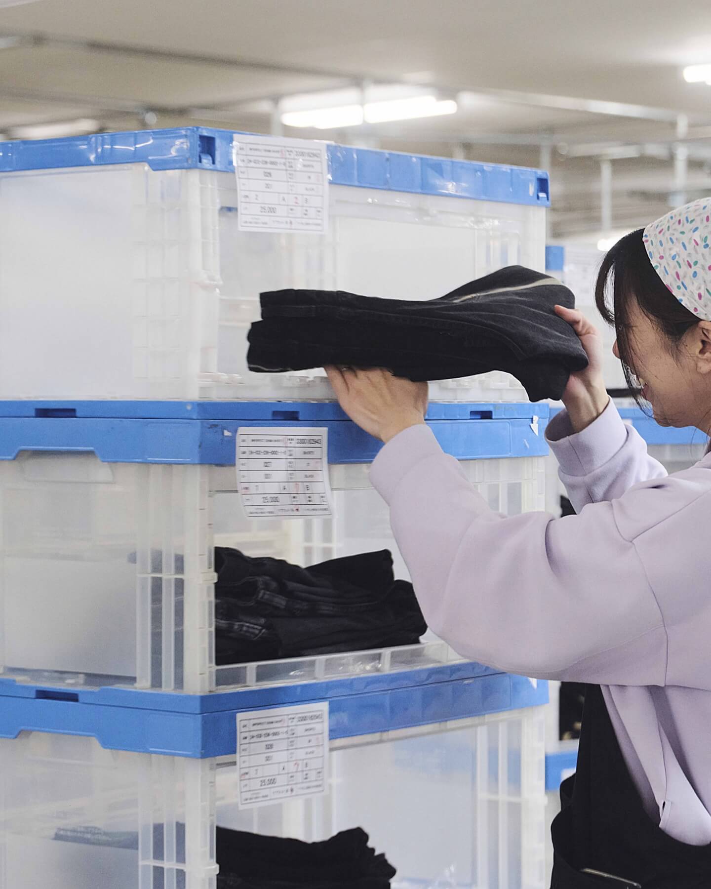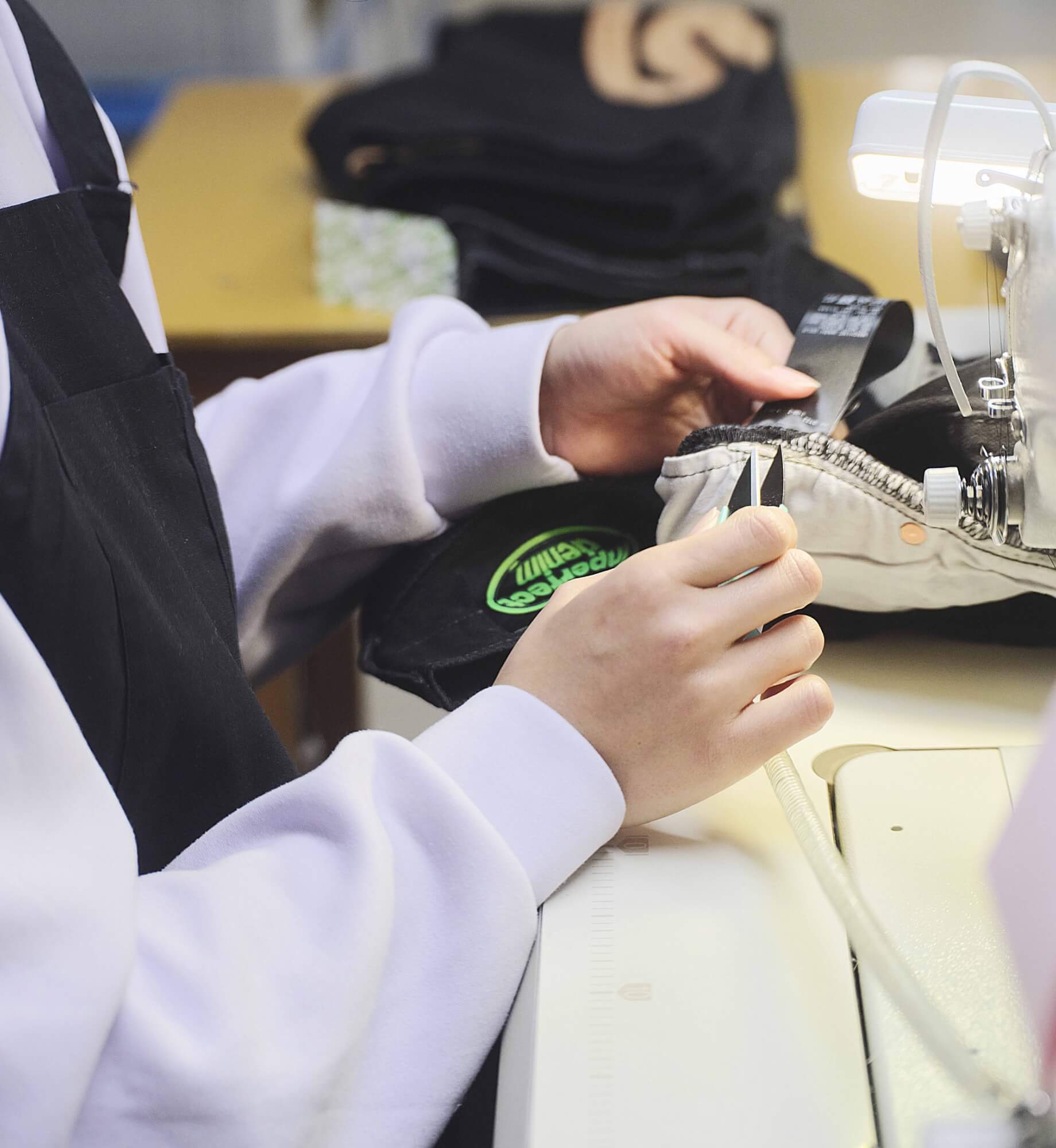 品質管理課で縫製を担当しています。検品の結果、補修が必要と判断されたものを直したり、海外仕様の洋服タグを日本仕様のものに付け替えたり、といった仕事です。
