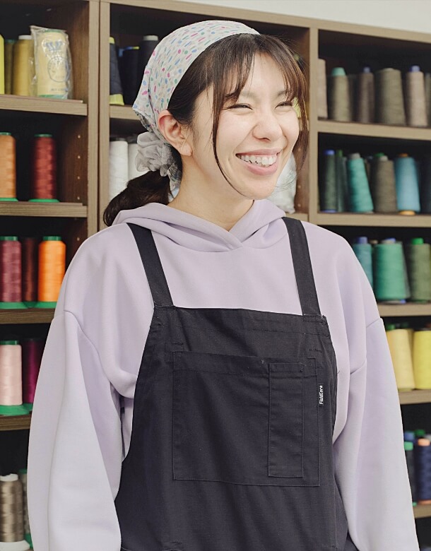 前職がアパレル系といっても、仕事は生産管理だったので、業務用のミシンを触るのは専門学校以来だったんです。最初は周りの人たちにたくさん質問しましたし、やり直すことも多かったんですが、皆さん本当に優しく見守ってくれましたね。初心者でも直せそうなものから任せてもらえたり、「こうするといいよ」と逐一アドバイスしてくれたりして、徐々にステップアップすることができました。